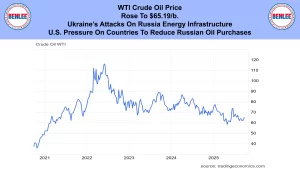 WTI crude oil rose to $65.19/b. This was on Ukraine’s attacks on Russian energy infrastructure. Also, on the U.S. pressure on countries to reduce Russian oil purchases.