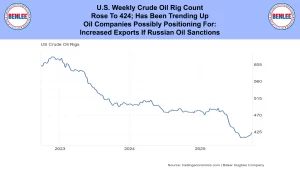 The U.S. weekly crude oil rig count rose to 424 and has been trending up. Oil companies are possibly positioning for increased exports if Russian oil sanctions happen.
