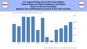 U.S. August ending annual PCE core inflation, the federal reserve’s preferred measure of inflation. It rose to 2.9% as forecasted. It is believed this tariff related increase is a one-time increase.