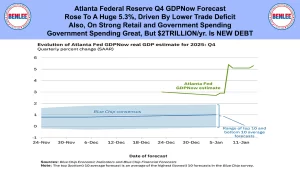 Atlanta Federal Reserve Q4 GDPNow forecast rose to a huge 5.3%. This was driven by the lower trade deficit. Also, on strong retail and government spending. Note that government spending in great for the economy, but $2 Trillion/year is new debit.