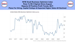 NFIB small business optimism index rose to 99.5 the highest since August, on reports of positive profits trends, BUT plans for hiring, capital outlays and expected higher sales all declined.