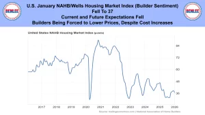 U.S. January NAHB/Wells Fargo housing market index which is builders sentiment. It fell to 37 as current and future expectations fell as builders are being forced to lower prices, despite cost increases.