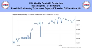 U.S. weekly crude oil production rose slightly to 13.505Mb/d., on the possible positioning to increase exports if Russian oil sanctions hit.