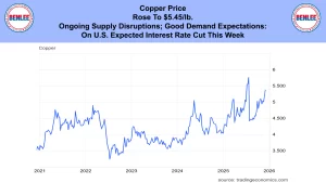 Copper price rose to $5.45/lb., due to ongoing supply disruptions. Also, on good demand expectations on the U.S. expected interest rate cut this week.