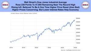 Wall Street’s Dow Jones Industrial Average rose 239 points to 47,955 remaining near the record high. Rising inflation is believed to be a one-time higher price reset, which is also bad. Higher prices are concerning, but lower interest rate will help the economy.