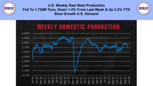U.S. weekly raw steel production fell to 1.736M tons, down 1.4% from last week and up 3.3% year to date. This was on slow growth U.S. demand.