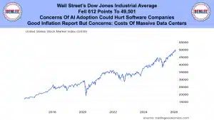 Wall Street’s Dow Jones Industrial Average fell 612 points to 49,501. This was on concerns of AI adoption could hurt software companies. Also, on the good inflation report, but on concerns over the costs of massive data centers.