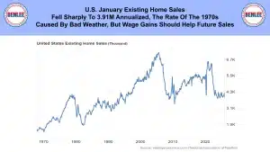 U.S. January existing home sales fell sharply to 3.91M annualized the rate of the 1970s. This was caused by bad weather, but wage gains should help future sales.