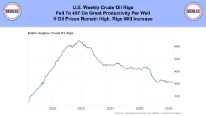 U.S. weekly crude oil rigs fell to 407 on great productivity per well. If oil prices remain high, rigs will increase.