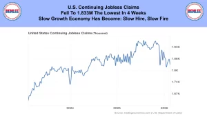 U.S. continuing jobless claims fell to 1.833 million, the lowest in 4 weeks. The slow growth economy has become slow hire and slow fire.