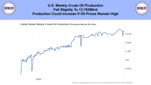 U.S. weekly crude oil production fell slightly to 13.702Mb/d. Production could increase if oil prices remain high.