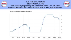 U.S. Federal Funds rate stayed at 3.5%-3.75%. The Federal Reserve said the economy is expanding, but they are concerned about low job gains. They revised their GDP estimates to 2.4% from 2.3% in 2026 and 2.3% in 2027, not the 4%+ the Administration is talking about.