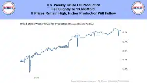U.S. weekly crude oil production fell slightly 13.668Mb/d. If prices remain high, higher production will follow.