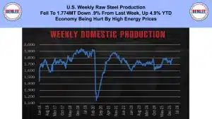 U.S. weekly raw steel production fell to 1.774MT down .9% from last week and up 4.9% YTD. The economy is being hurt by high energy prices.