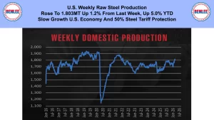 U.S. weekly raw steel production rose to 1.803MT up 1.2% from last week and up 5% year to date. This was on the slow growth U.S. economy and the 50% steel tariff protection.