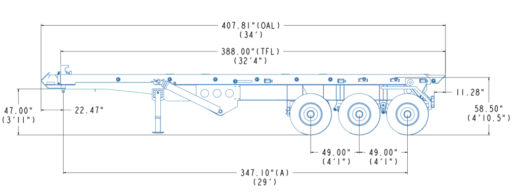 So when you are looking for a roll off trailer that will carry a box larger than the standard 20, 30 or 40 yard box, consider the Super Mini Long. A great trailer to haul those loads that are a bit larger!